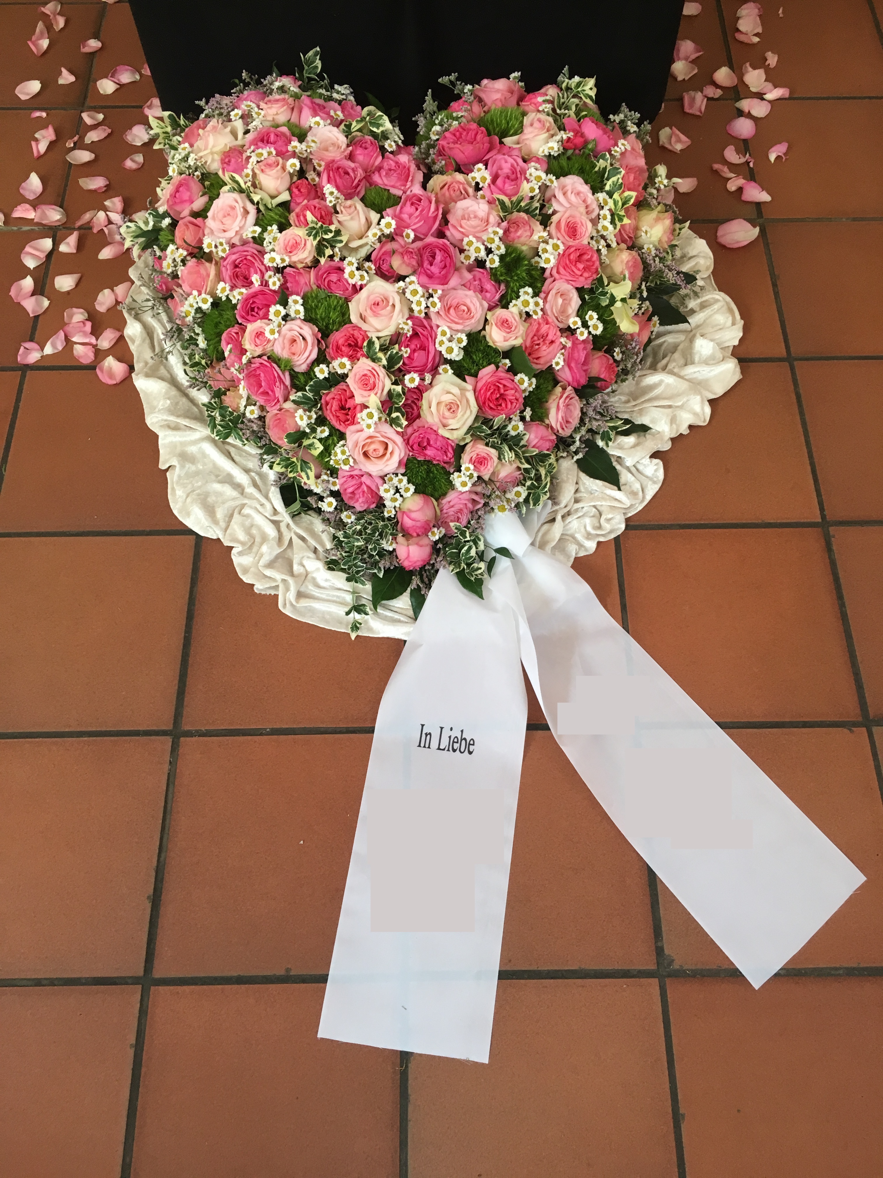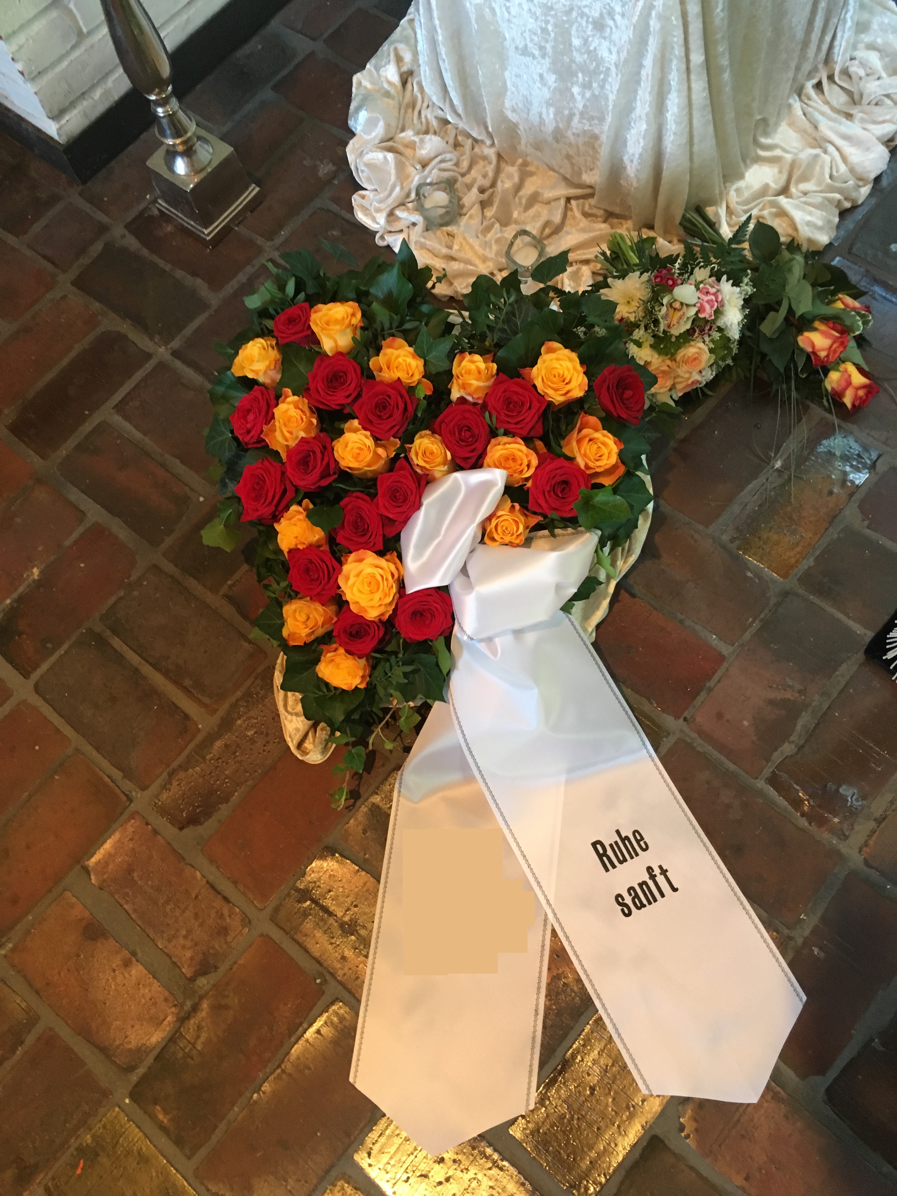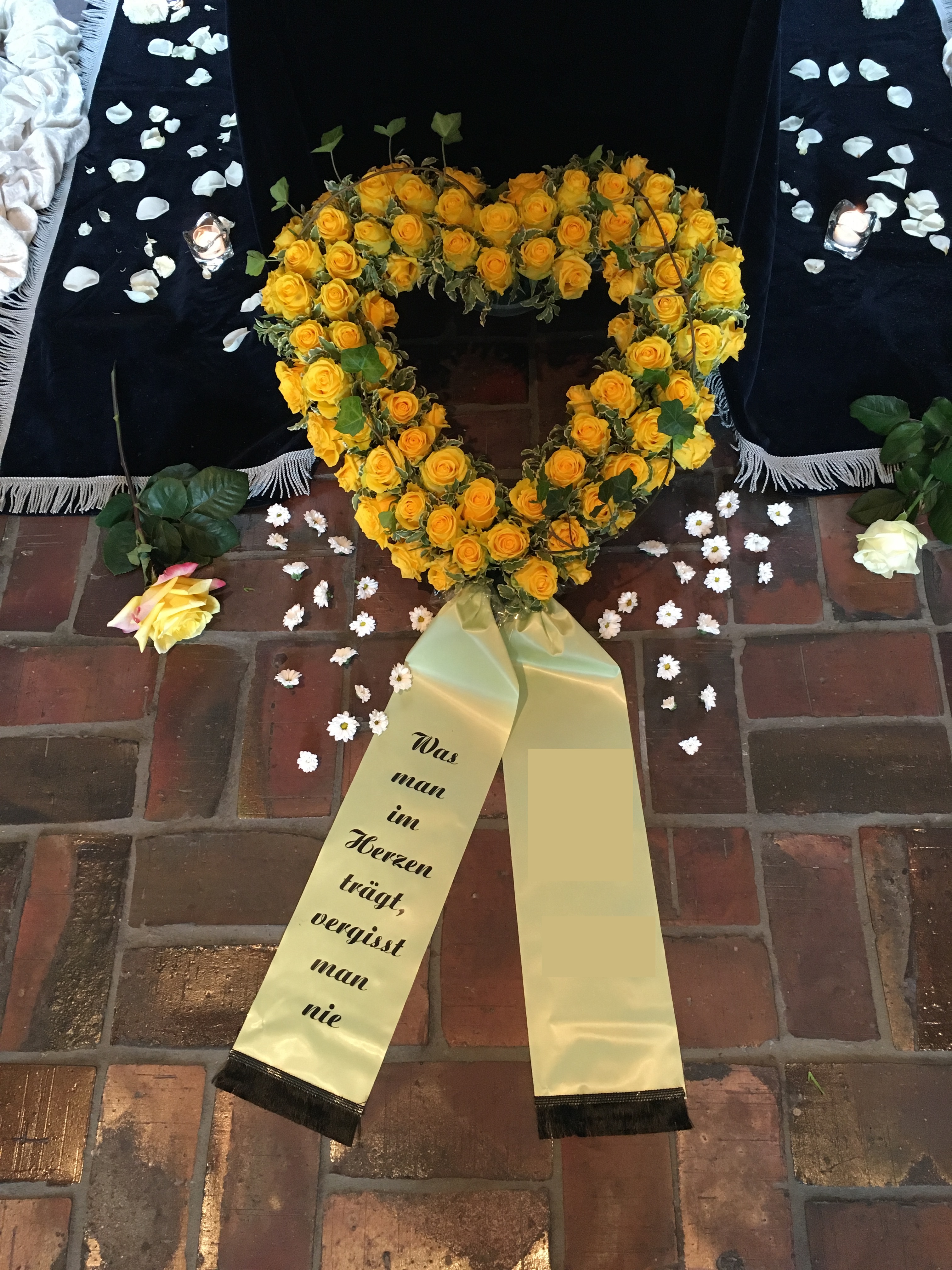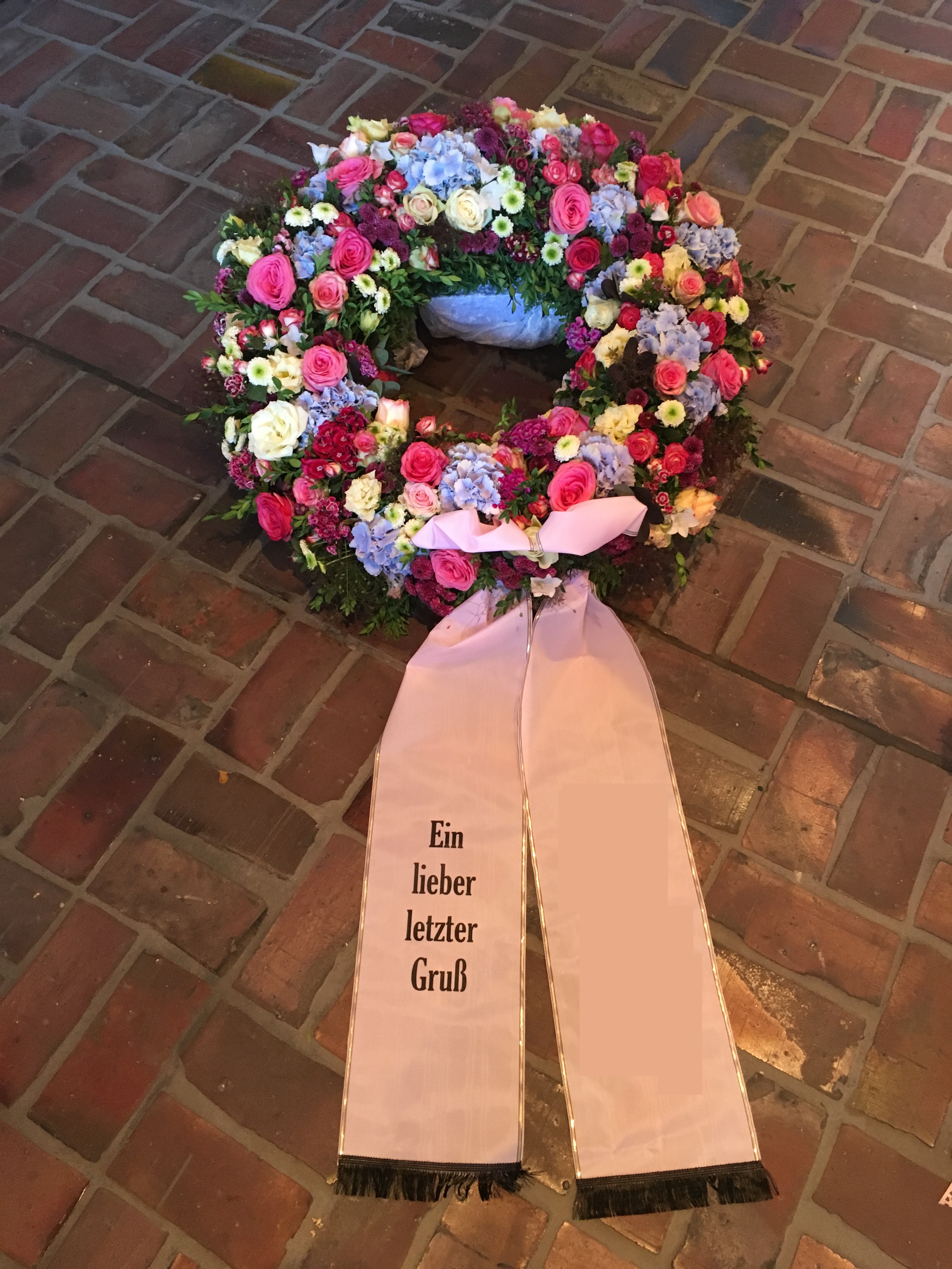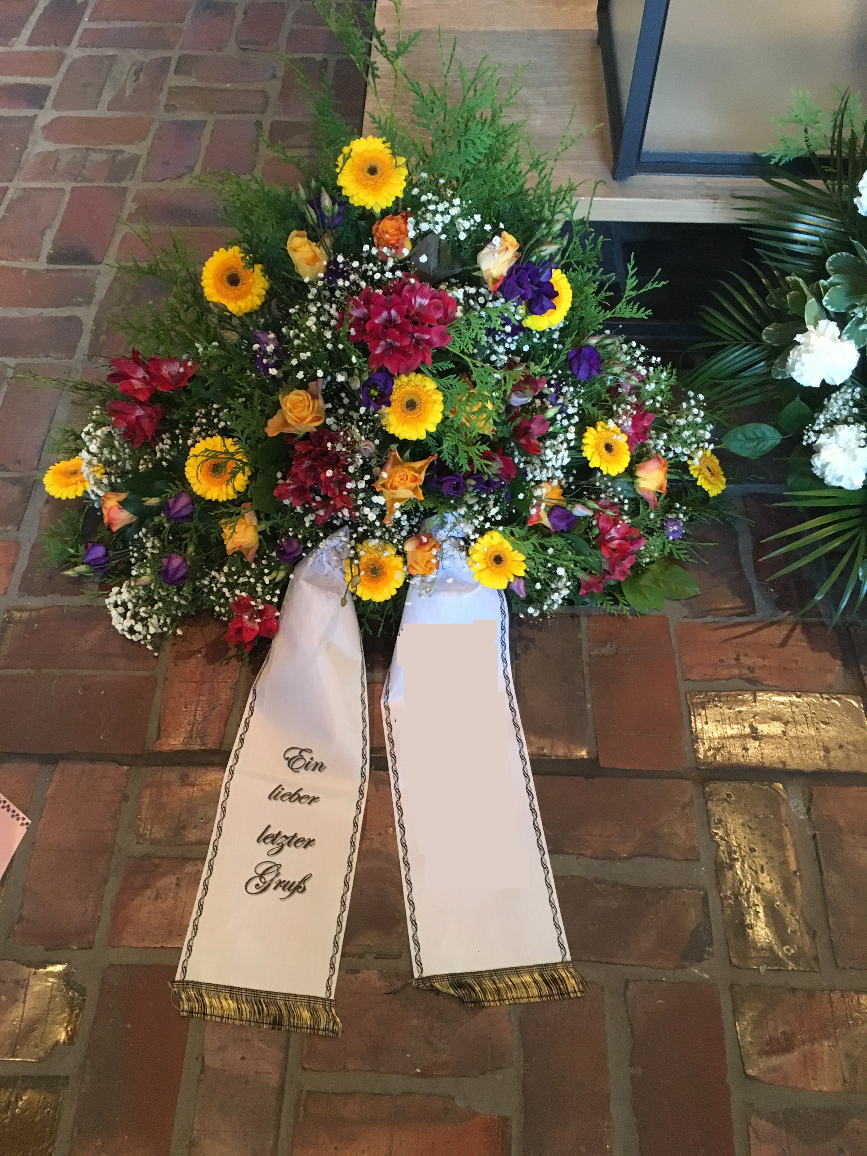 Bei einer Trauerfeier oder Beisetzung kann dem Verstorbenen ein letzter Blumengruß mit auf den Weg gegeben werden. Gefühle können in Art und Farbe der Blumen und Schleifen ausgedrückt werden.
