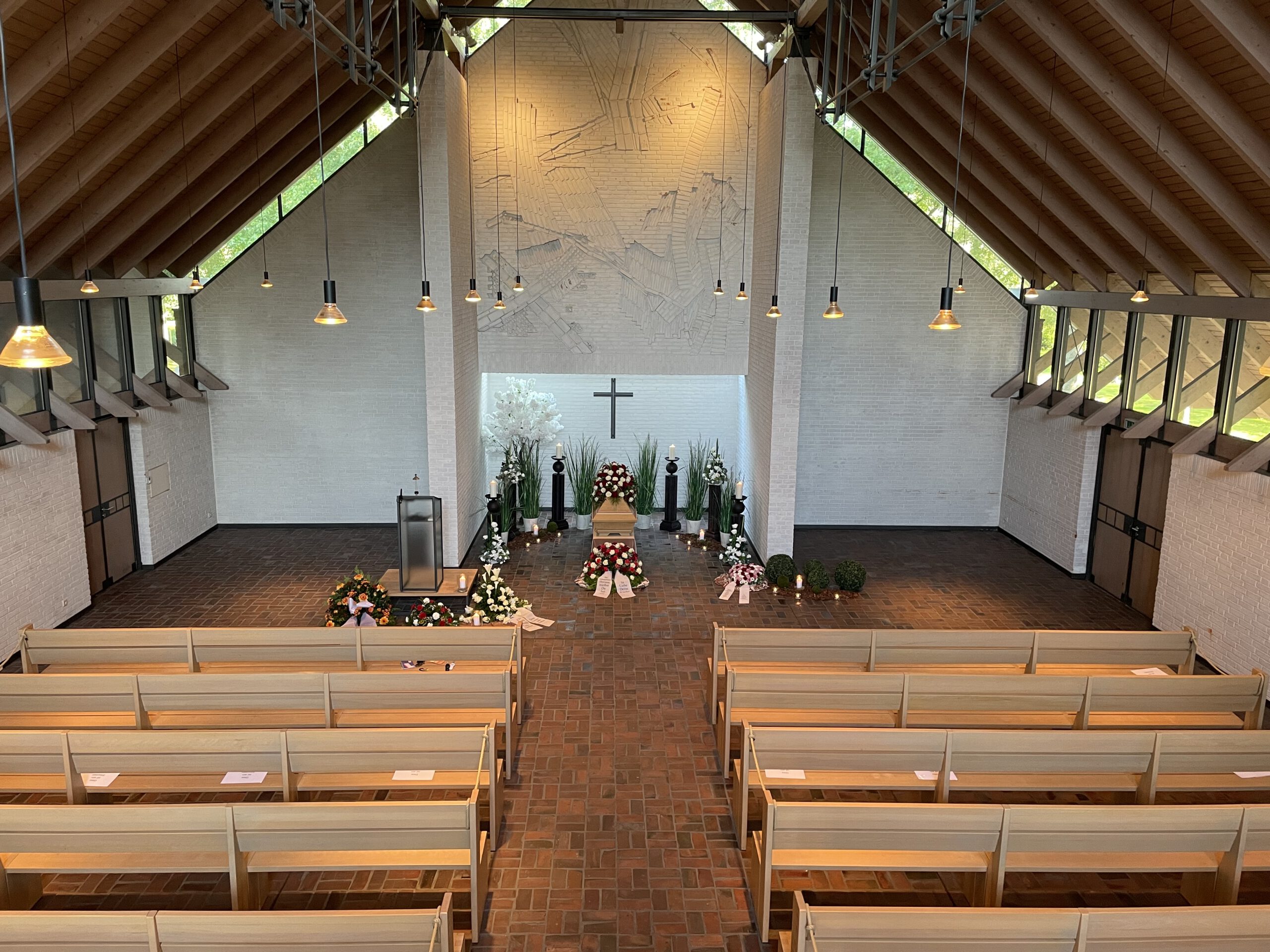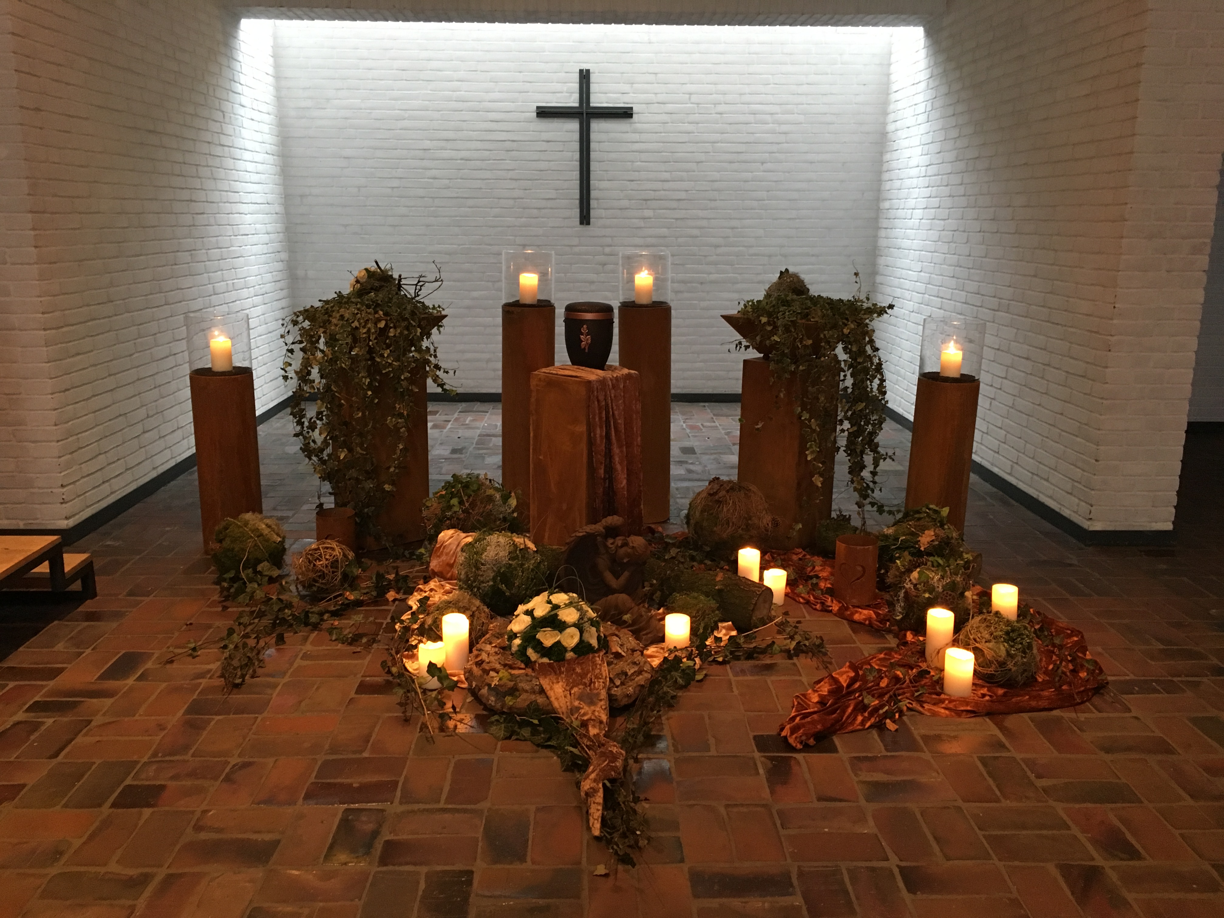 Eine Trauerfeier findet in der Regel in einer Friedhofskapelle, einer Kirche oder dem Bestattungshaus statt.